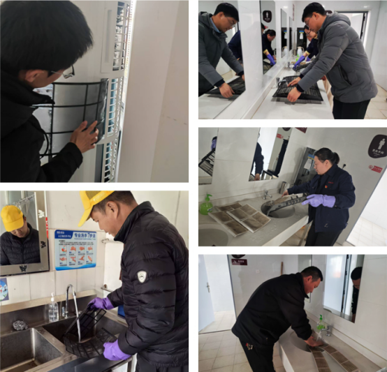 活動(dòng)中,全體人員自備清洗工具,依次對廠區(qū)辦公室、接待室、會議室、食堂等區(qū)域空調(diào)過濾網(wǎng)進(jìn)行拆卸清洗?;顒?dòng)全程分工明確,電工負(fù)責(zé)斷電、拆卸及安裝,其余人員則嚴(yán)格按照操作規(guī)范除塵清洗,確保清洗工作安全高效。